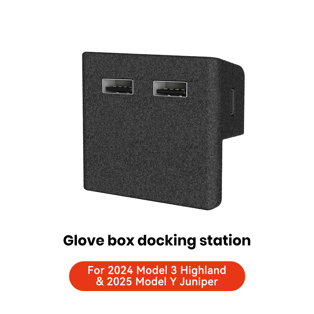 Upgrade your Tesla Model Y or Model 3 with this sleek and highly functional glove box docking station. Designed to integrate seamlessly with your vehicle’s interior, this docking station adds four high-speed USB ports, a Type-C charging port, and enhanced data transmission capabilities without compromising the aesthetics of your car. Whether you’re charging multiple devices or need extra ports for your driving recorder and USB drives, this docking station offers the perfect solution for a cleaner, more connected driving experience.