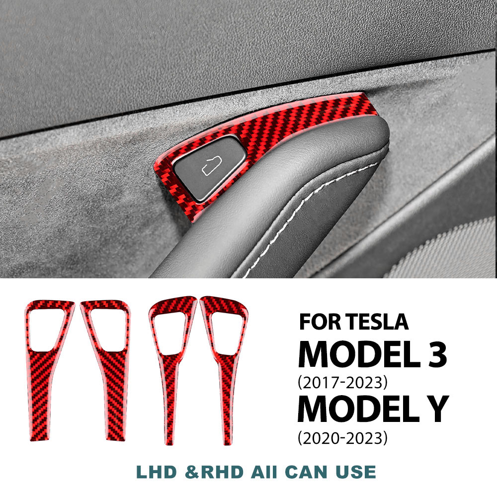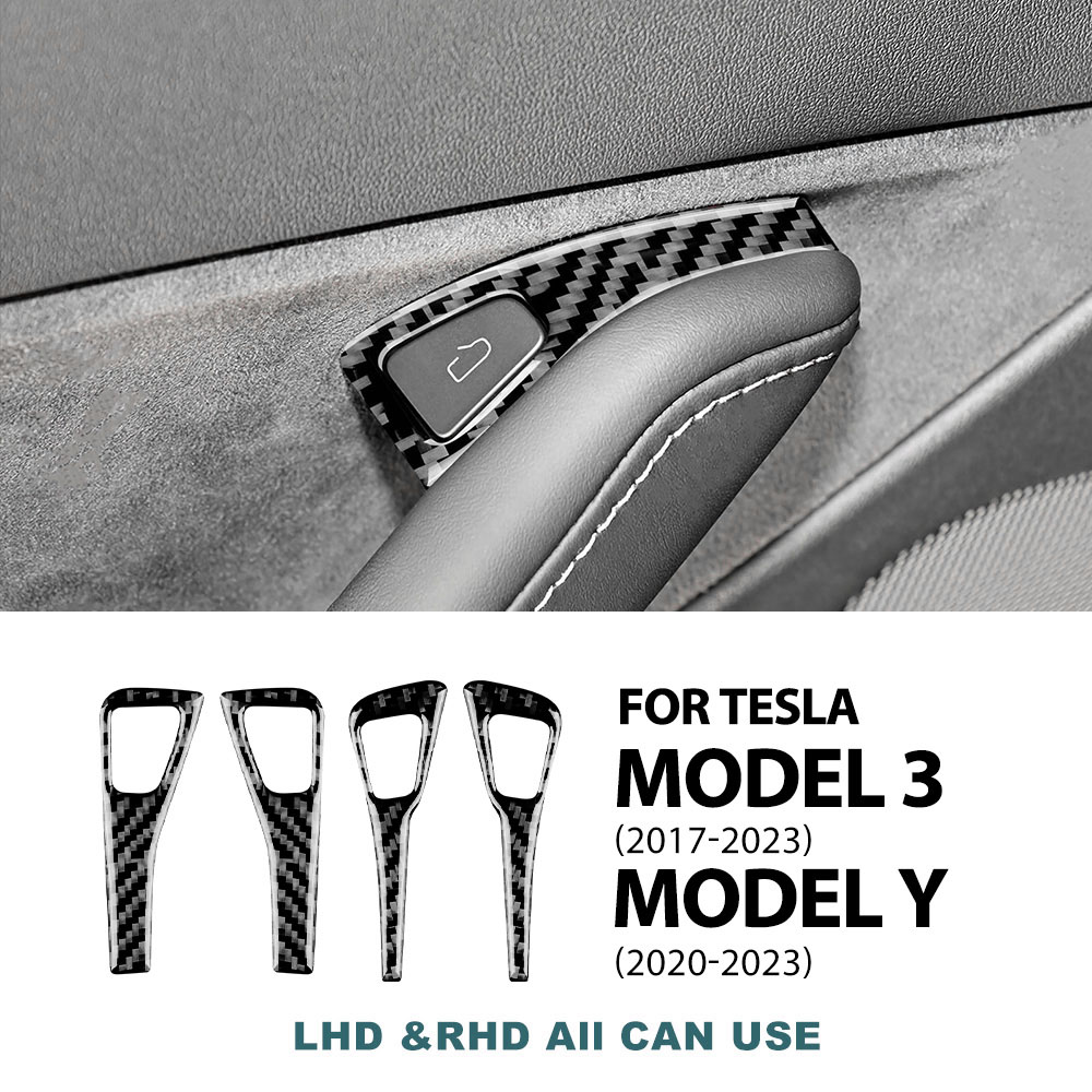 Upgrade your Tesla Model 3 or Model Y with the sleek and durable Carbon Fiber Window Lifting Switch Panel Trim. This set of 4 pieces is designed to perfectly fit the window control areas of your Tesla, adding a sophisticated touch to your car’s interior. Made from high-quality real soft carbon fiber and epoxy coating, this trim not only enhances the aesthetics of your Tesla but also provides protection from wear and tear, ensuring your vehicle stays looking new all year round.