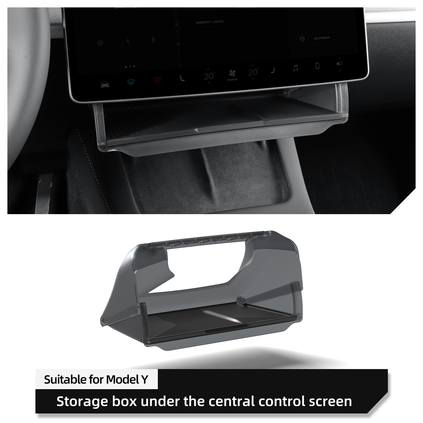 If you’re looking for an efficient way to keep your Tesla Model Y or Model 3 interior tidy, look no further. This sleek, under-screen storage organizer is the perfect solution for maximizing your car’s space without sacrificing style. Designed specifically for Tesla vehicles, this hidden storage tray neatly fits under the central control screen, making it an ideal place to store small items like keys, coins, sunglasses, and other essentials. Its clean, minimalist design blends seamlessly with your car’s modern interior, offering a functional storage solution that doesn’t detract from your vehicle’s aesthetic.
