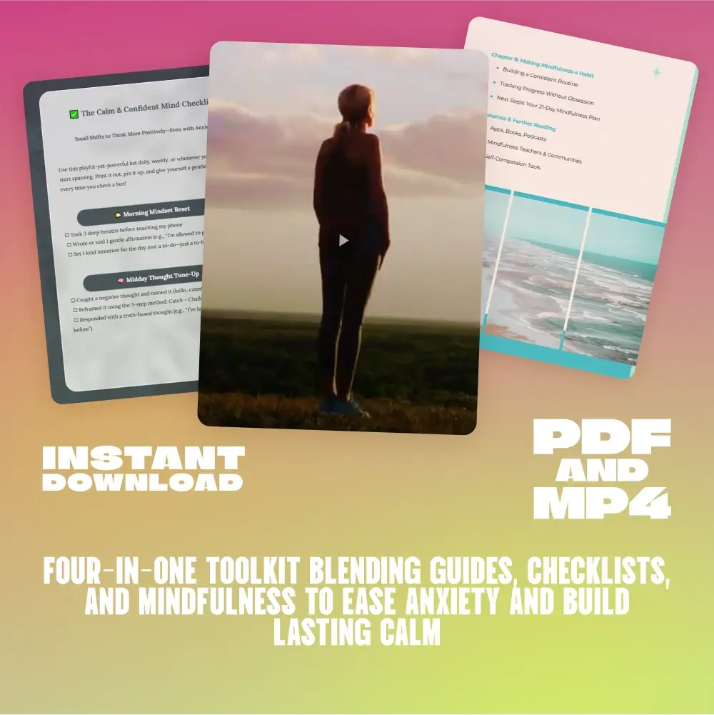 This bundle is truly a game changer! It's a great mix of resources that come together to create a well-rounded approach to tackling anxiety. The positivity plan, in particular, is a standout. It really dives deep into why simply thinking positive doesn’t always cut it and offers clear, actionable steps to shift your mindset. Reframing your thoughts has never been so accessible, and the exercises provided make the process feel manageable rather than overwhelming. What I love most about this set is how user-friendly everything is. It’s not just theory – there are practical tools like checklists and course outlines that help guide you every step of the way. Whether you're new to mindfulness or have been practicing for a while, there’s something valuable here for everyone