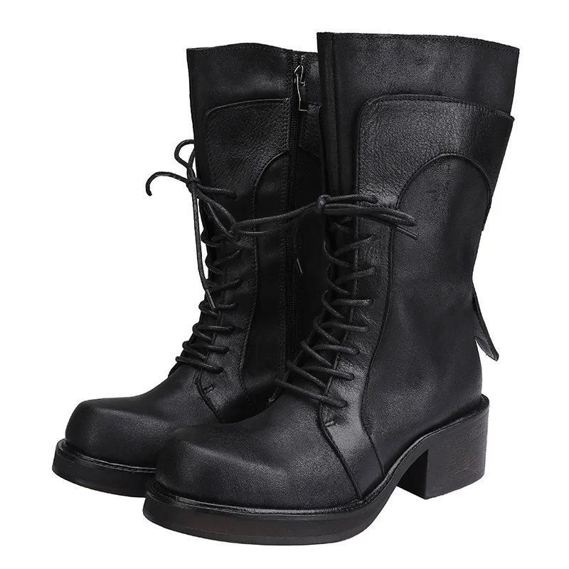 These boots aren’t just footwear; they’re a statement. Perfect for a night out, a concert, or even casual outings, they blend versatility and personality. The sturdy construction ensures durability, while the soft inner lining keeps you comfortable all day long. The lace-up design allows for customizable fit, and the side zip adds convenience. With a thick heel, you’ll enjoy both height and stability.