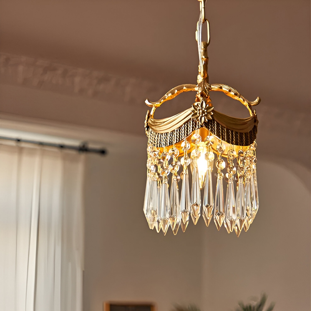 Elevate your home’s ambiance with the exquisite charm of the Vintage French Copper Crystal Pendant Light. Inspired by classical European designs, this elegant chandelier features a polished copper finish and sparkling crystal details, creating a warm and sophisticated glow. Perfect for illuminating cozy spaces, this light is ideal for porches, corridors, balconies, and even bedside areas. Whether you’re aiming for a romantic vintage aesthetic or a refined modern touch, this pendant light effortlessly enhances any setting.