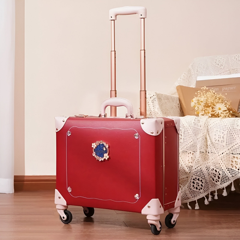 Vintage-Style PU Leather Trolley Suitcase Set for Women