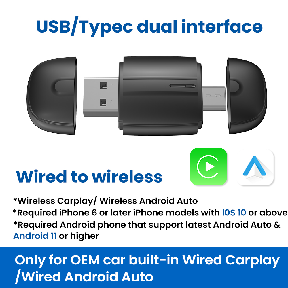 • Seamless Switching: Easily switch between Wireless CarPlay and Wireless Android Auto.