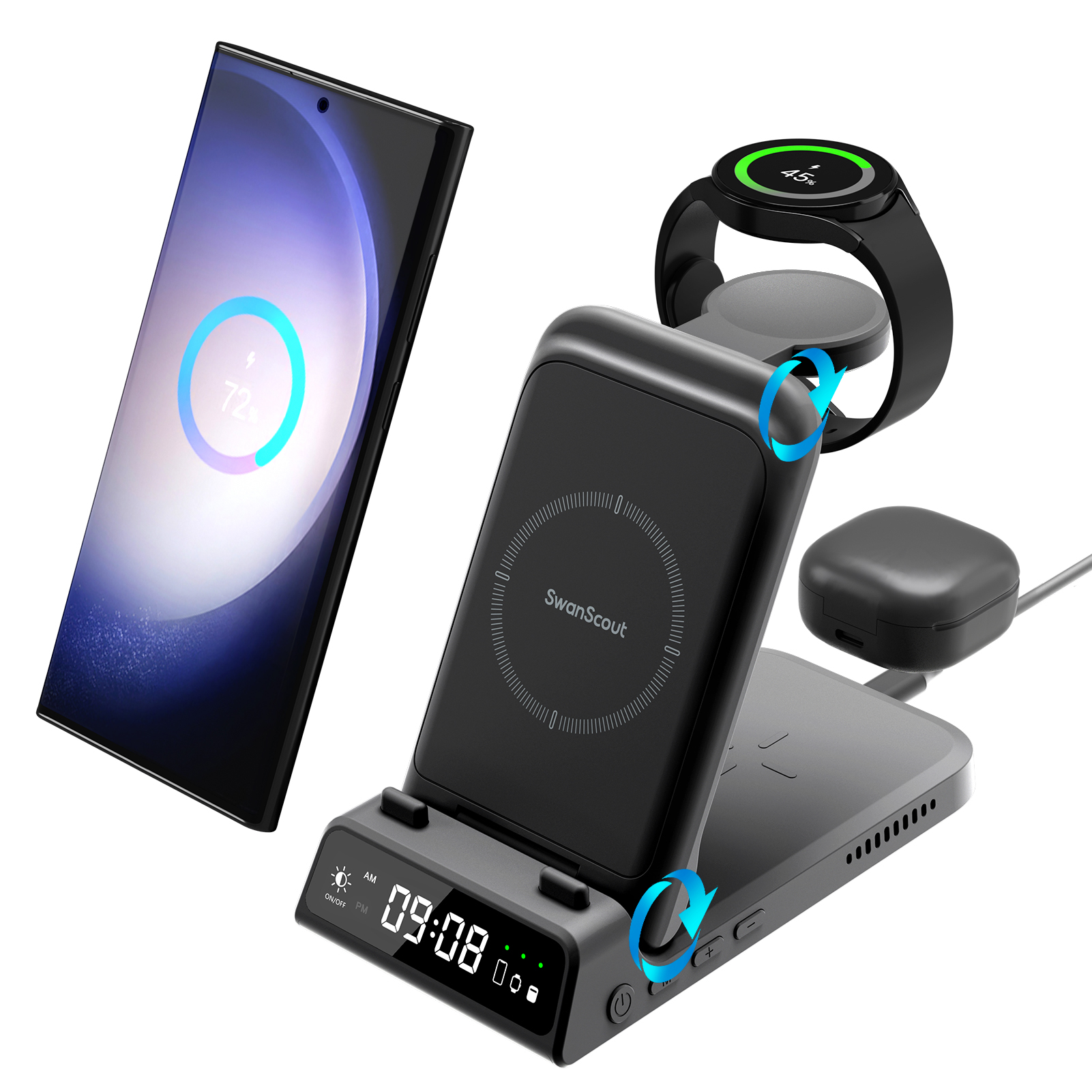 This charging station is optimized for Samsung Galaxy devices, including the latest S24 Ultra, Z Flip6, Z Fold6, Galaxy Watch Ultra, and Buds 2 Pro. It also works seamlessly with older Samsung models and other wireless charging-enabled devices, making it a versatile addition to your tech setup.