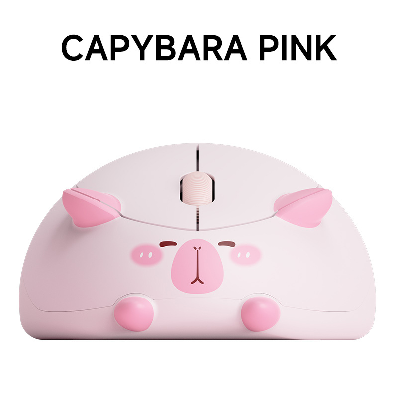 Wireless Cute Pink Capybara and Lucky Cat Mouse