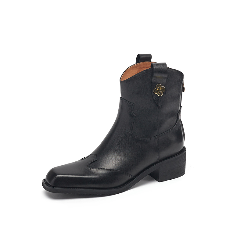 Crafted from high-quality cowhide leather, both the upper and the shaft of these ankle boots are designed to be durable and luxurious. The sheepskin lining and insole ensure that your feet stay warm and comfortable, while the rubber outsole offers excellent traction and stability. The rear zipper closure adds convenience, making these boots easy to slip on and off. With a striking square toe and a chunky high heel of 4.5 cm, these boots add a touch of retro sophistication to your wardrobe.