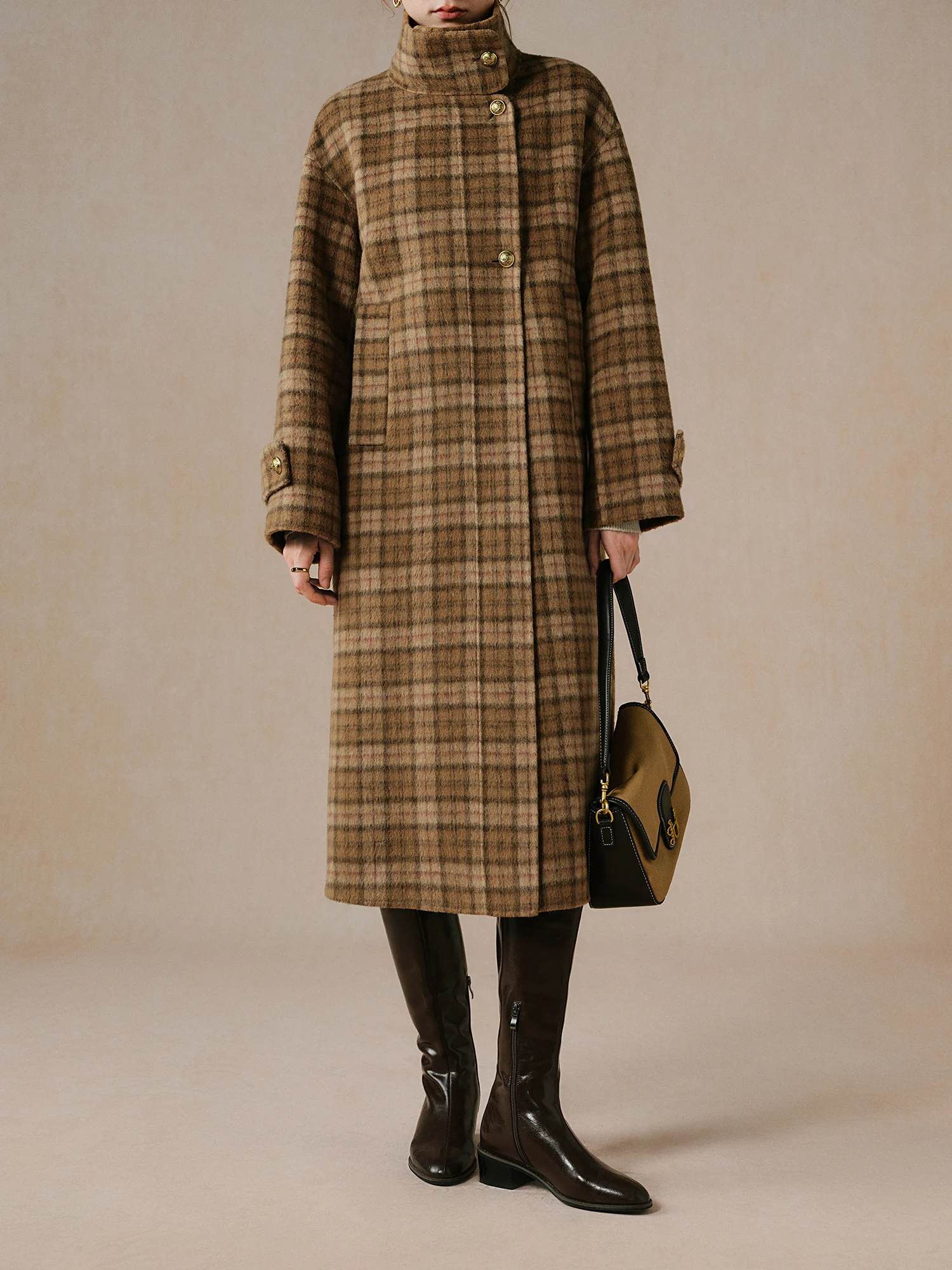 • High-Quality Materials: Made from a premium blend of 91.9% wool and 8.1% camel hair for the beige option, 100% wool for the grey, and a blend of 60.6% sheep wool, 26.7% polyester, and 10.9% alpaca wool for the khaki plaid option.